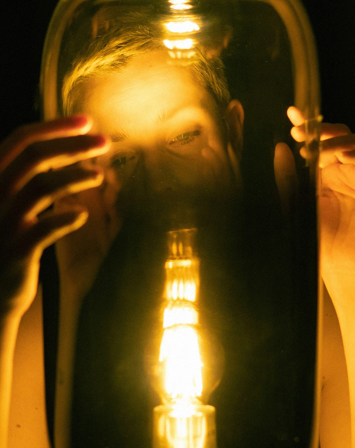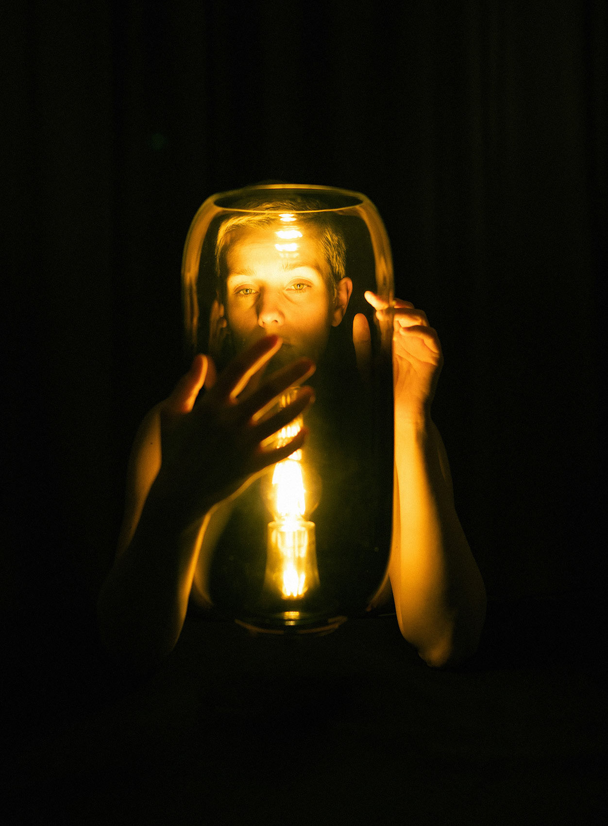 self-portraits with lamp "Gople" (designed by Bjarke Ingels Group) for Artemide