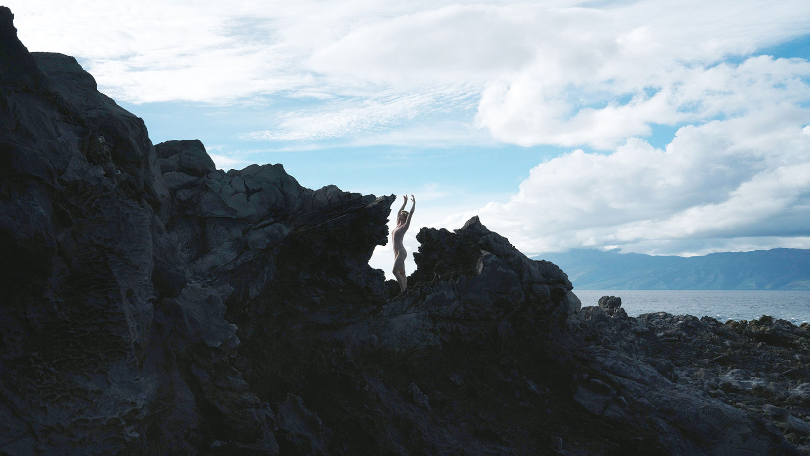 self-portraits in a river-bed and in between rock-formations.